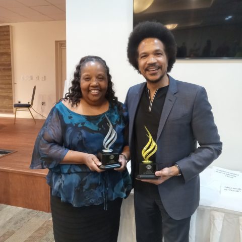 Sharon Head Deaconess Evelyn M awarded 2nd place Toastmasters International 2024-2025 Table Topic with first place winner Gary Floyd