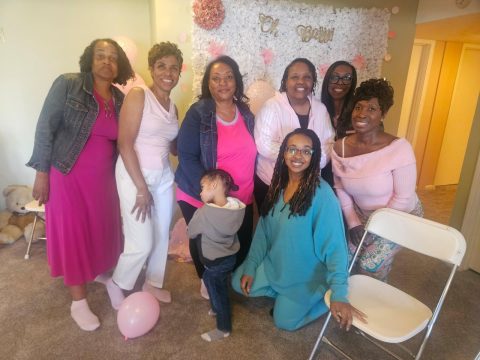 Sharon Deaconess department support Britne M, Christie M, Donetta J, and Evelyn M assisting church supported baby shower